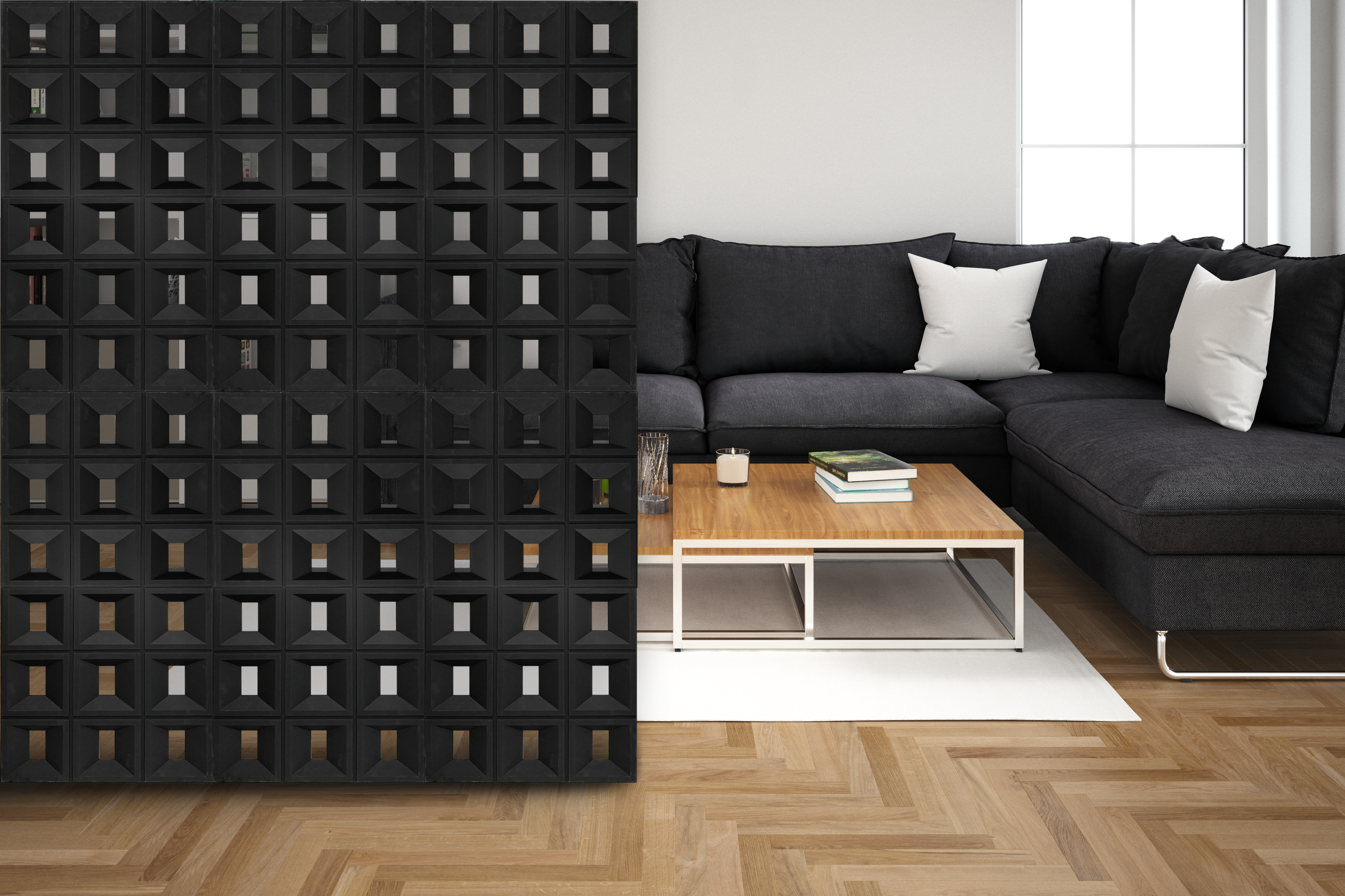 Este separador de ambiente en color negro es ideal para dividir espacios de manera elegante y funcional. Fabricado con materiales de alta calidad, proporciona privacidad y crea un ambiente más organizado. Su diseño moderno y versátil se adapta a cualquier tipo de decoración y maximiza el aprovechamiento del espacio.